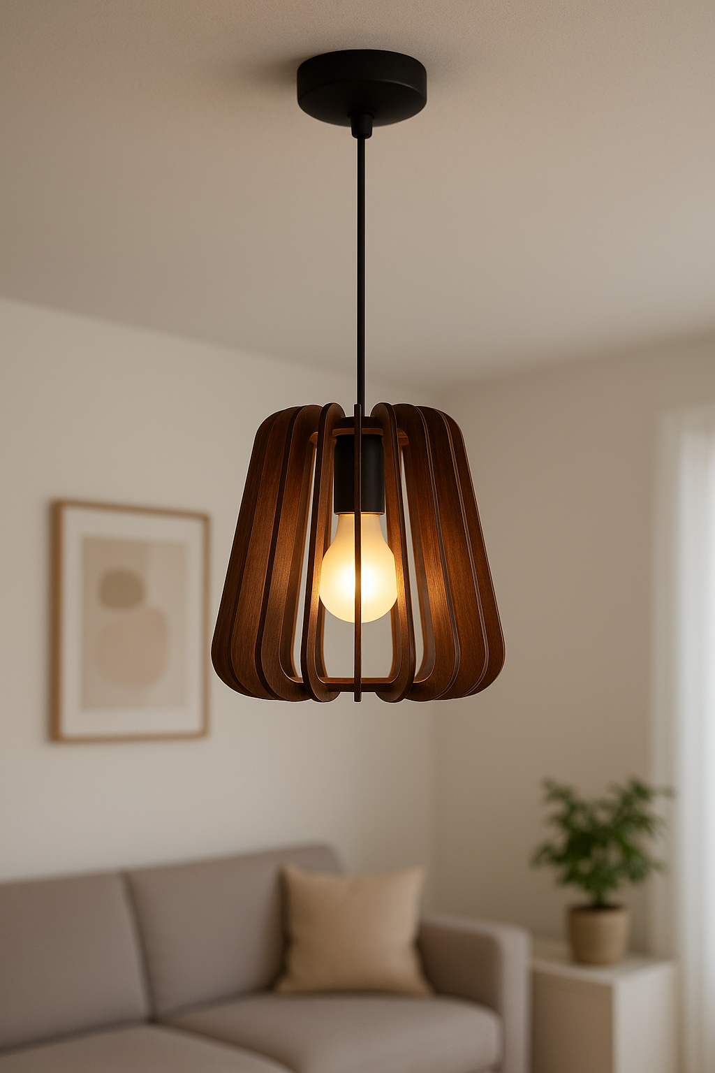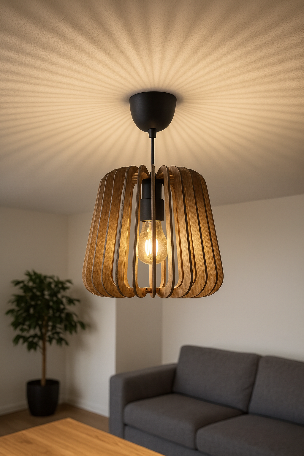 Deckenleuchte Lunara aus Holz, handgefertigt